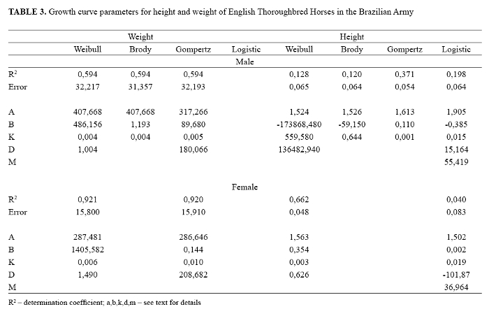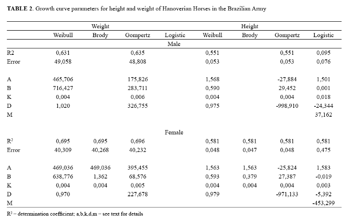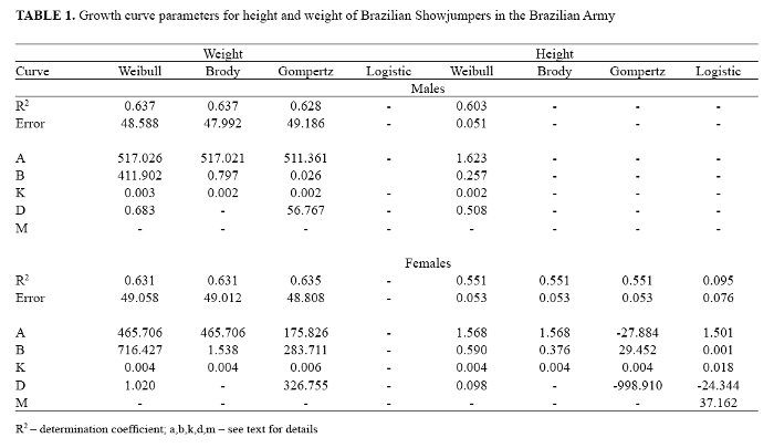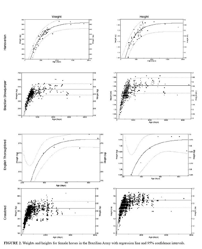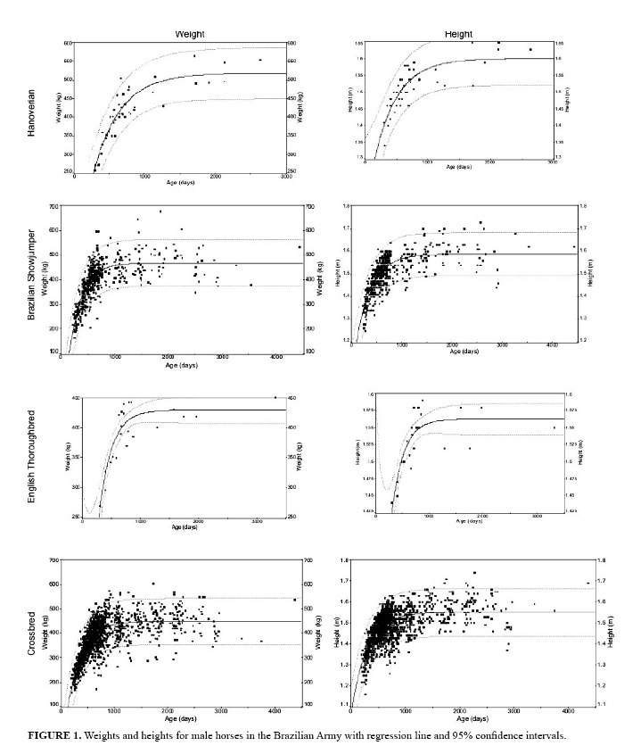 cavalos. Estimaram-se curvas de crescimento gerais usando os modelos de