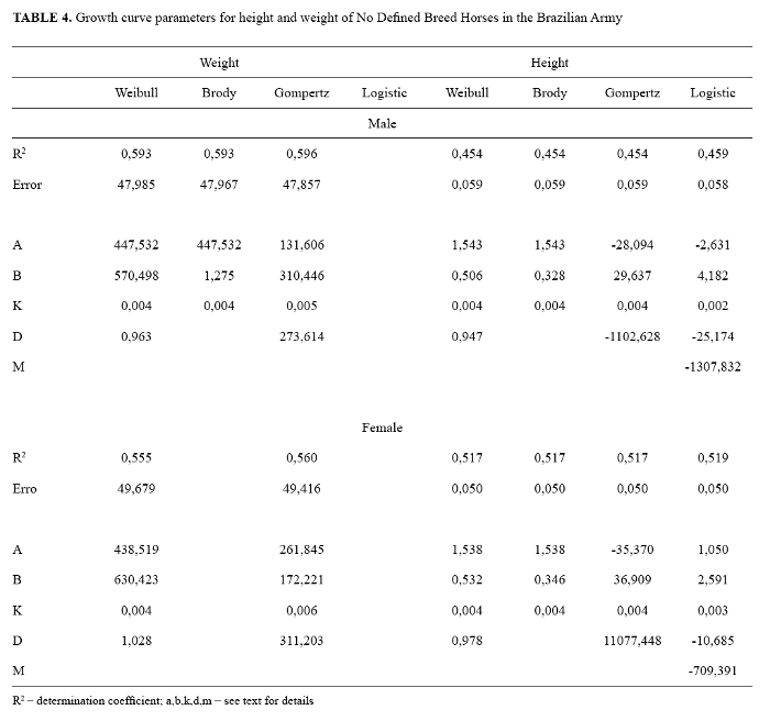 CURVAS DE CRESCIMENTO NÃO-LINEARES PARA PESO E ALTURA EM QUATRO GRUPOS GENÉTICOS DE CAVALOS