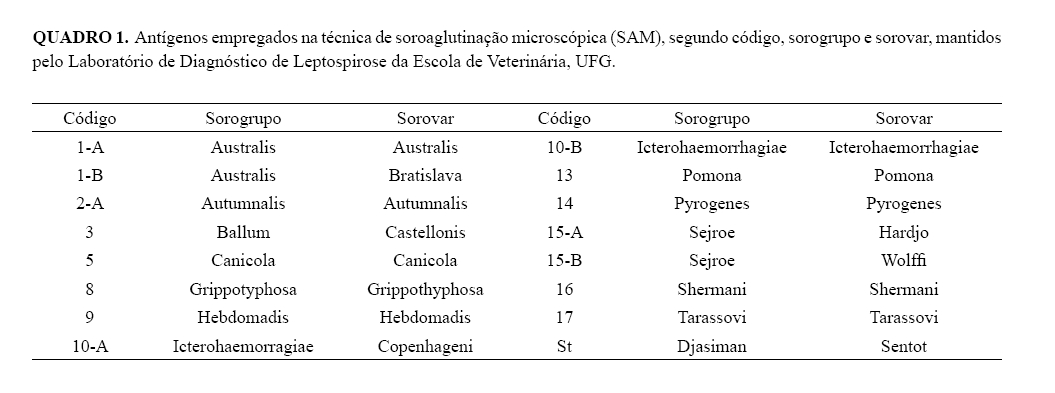 (2001) analisaram exames de soroaglutinação microscópica (SAM)