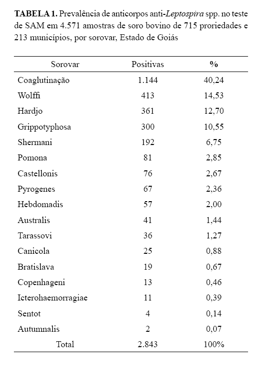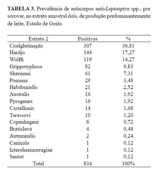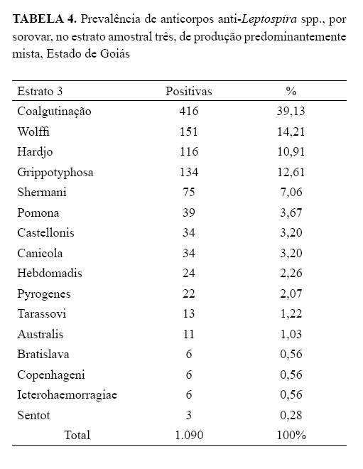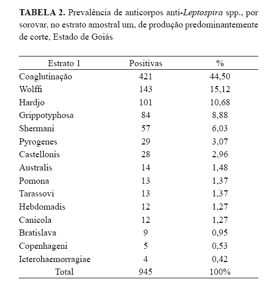 Icterohaemorrhagiae (20,50%), Hardjo (5,20%) e Tarassovi (4,90%).