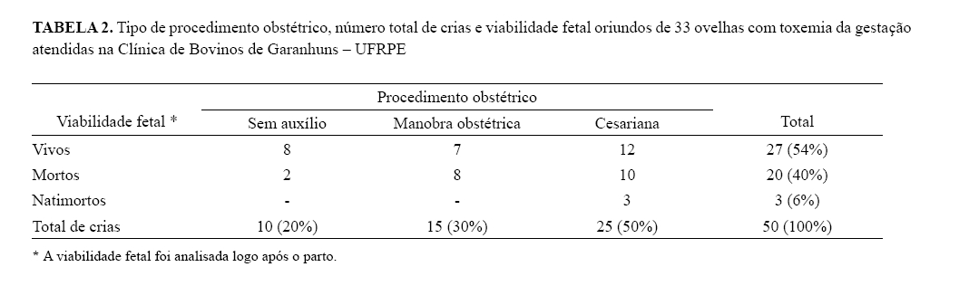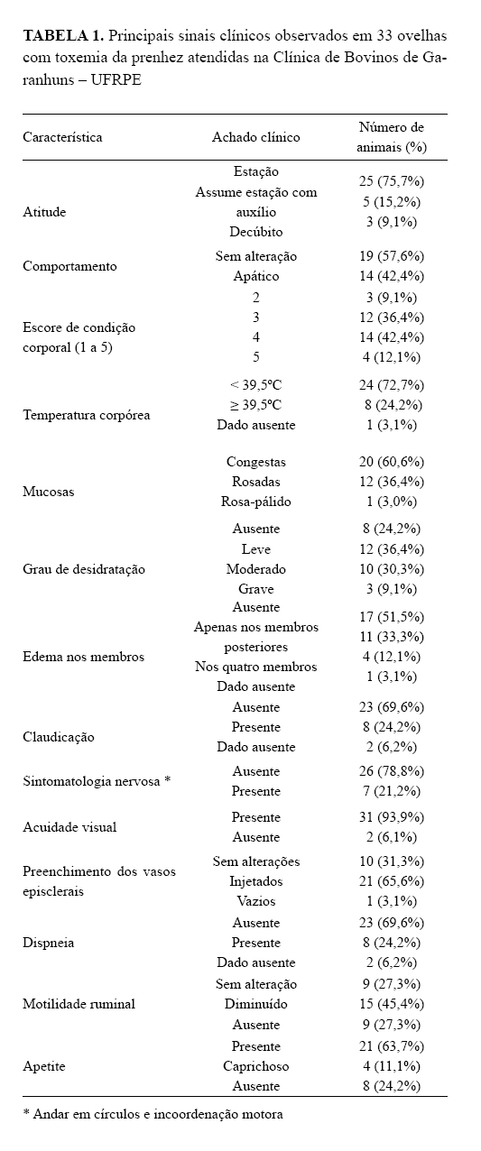 uma análise retrospectiva dos achados de 33 ovelhas com toxemia da