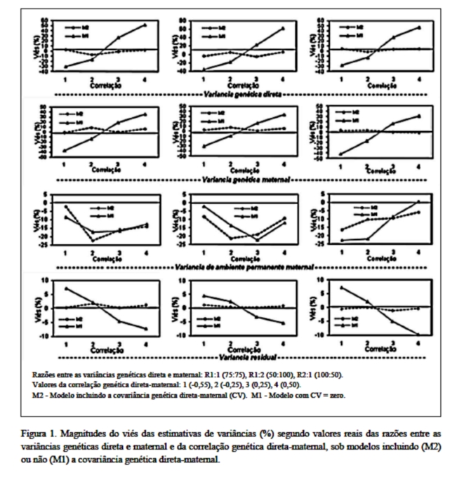 maternal. Quando a correlação genética direta-maternal foi negativa o M1