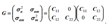 Como característica sob efeito maternal, considerou-se o peso à desmama (PD), cujo valor para os machos foi acrescido em 15 kg, em relação às fêmeas. Neste caso, a simulação dos efeitos genéticos direto e maternal foi gerada simultaneamente, já que tais efeitos são geneticamente correlacionados (SCHAEFFER, 2010). Esse processo sustenta-se na decomposição de Cholesky da matriz G de (co)variâncias genéticas, a qual pode ser expressa pelo produto de uma matriz vezes sua transposta, isto é:
