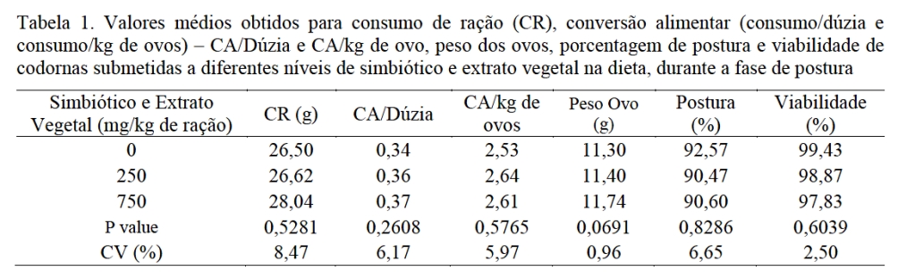 inclusão de simbiótico e extratos vegetais na alimentação de codornas na fase