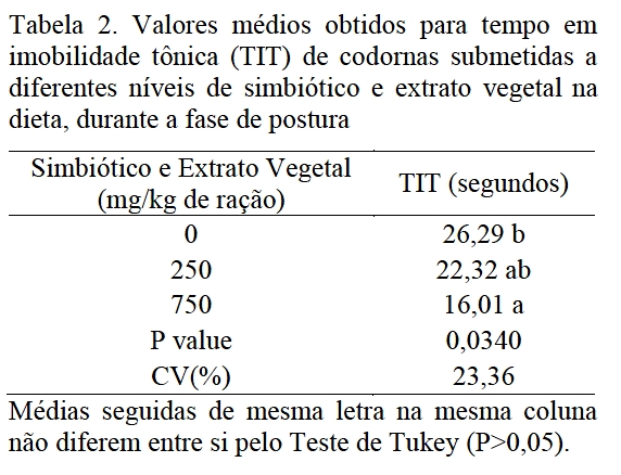 codornas e amenizar o estresse que acomete essas aves justamente por melhorar a