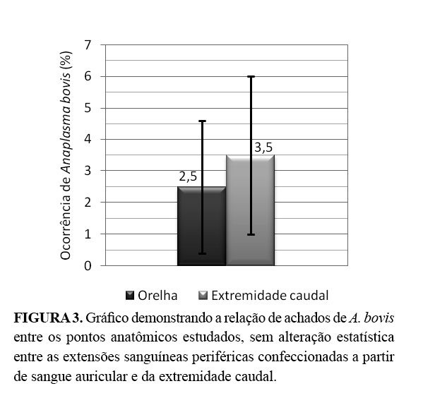 3,5 ± 2,55%, respectivamente, para orelha e extremidade caudal (