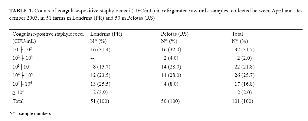 milk. Fifty-one farms in Londrina (PR) and 50 in Pelotas (RS) were
