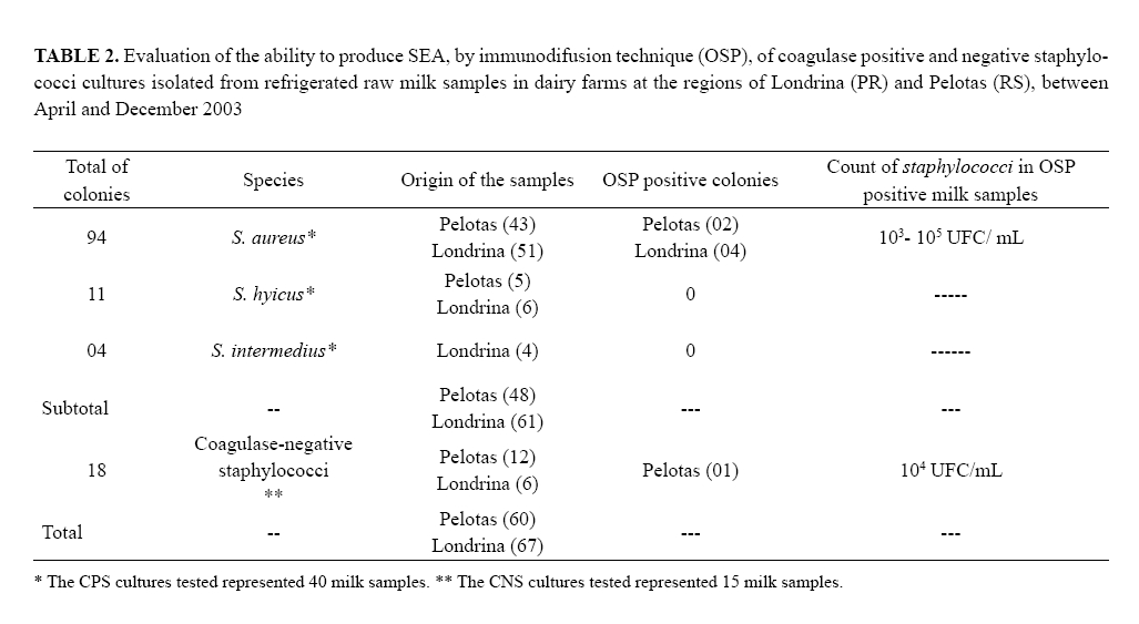 staphylococci (UFC/ mL), as well as to verify the ability of producing