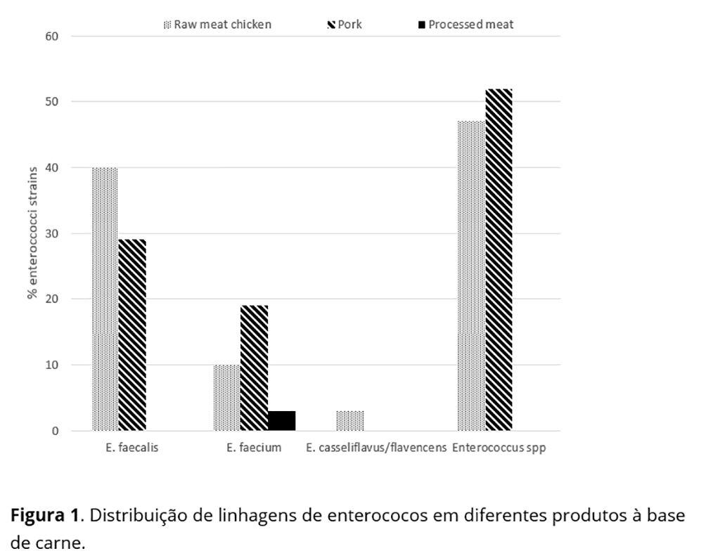 Os dados aqui apresentados revelam novos caminhos para estudar um possível papel para a presença de Enterococcus spp. na cadeia alimentar, principalmente em carnes cruas e processadas. Portanto, é essencial investigar amostras adicionais de alimentos para determinar o risco potencial para a população.