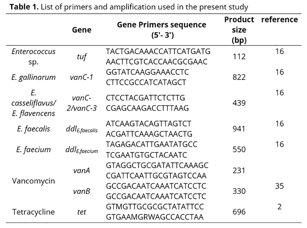 16. Dutka-Malen S. et al. Detection of glycopeptides resistance genotypes and identification to the species level of clinically relevant Enterococci by PCR. J Clin Microbiol. 1995; 33:.24-27.