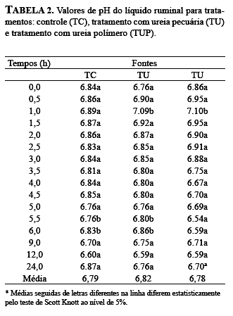 médias de N-NH3 ruminal para TUP mostraram-se superiores
