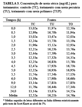 (16,70 mg/dL) que os demais tratamentos. A ureia polímero
