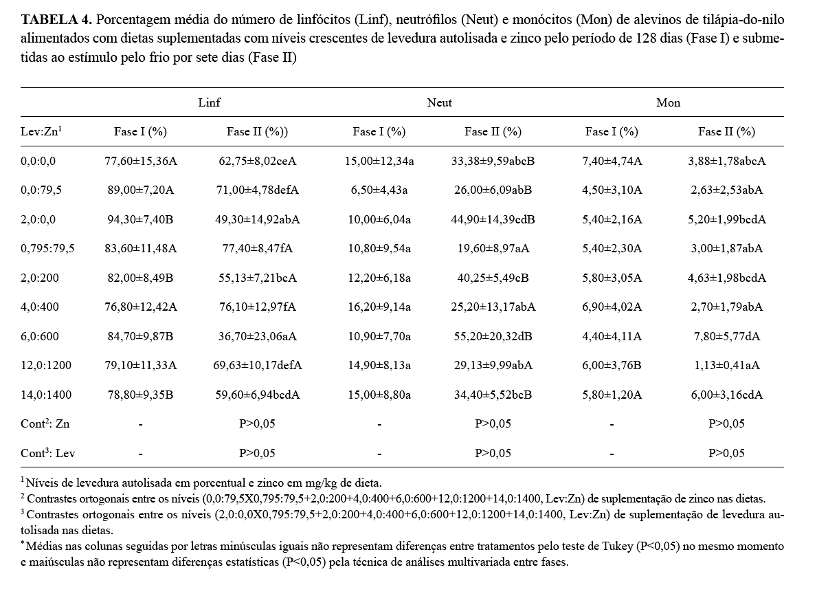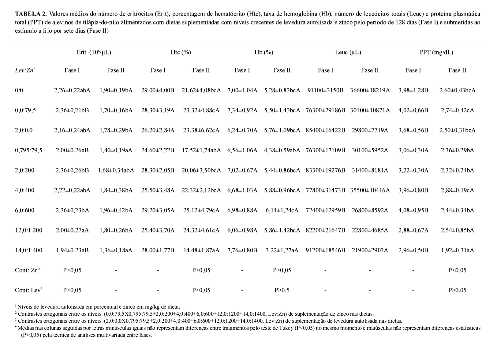 dietas 0,795:79,50 (Lev:Zn) e 14:1.400 (Lev:Zn). A ausência dos