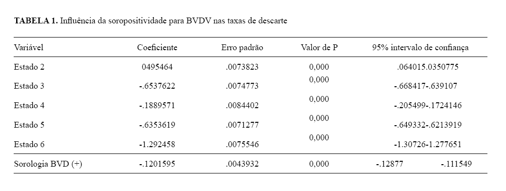 (BVD) nas taxas de descarte em 240 rebanhos leiteiros comerciais. Para