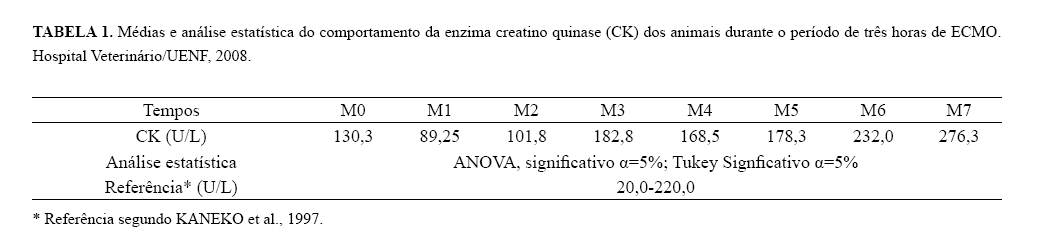 PALAVRAS-CHAVES: CK, CK-MB, cães, ECMO, fisiologia.