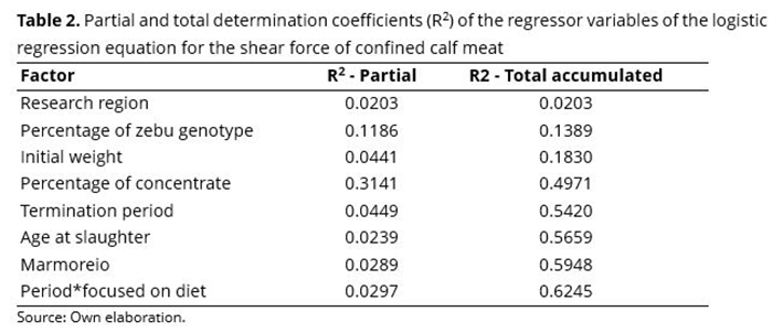 In this context, meta-analytical procedures using multivariate statistics can help understand these responses and can help model variables according to the results obtained from other characteristics that are easy to identify and control. In this study, we aimed to evaluate the main factors that influence meat tenderness and the probability of obtaining tender meat from confined calves.