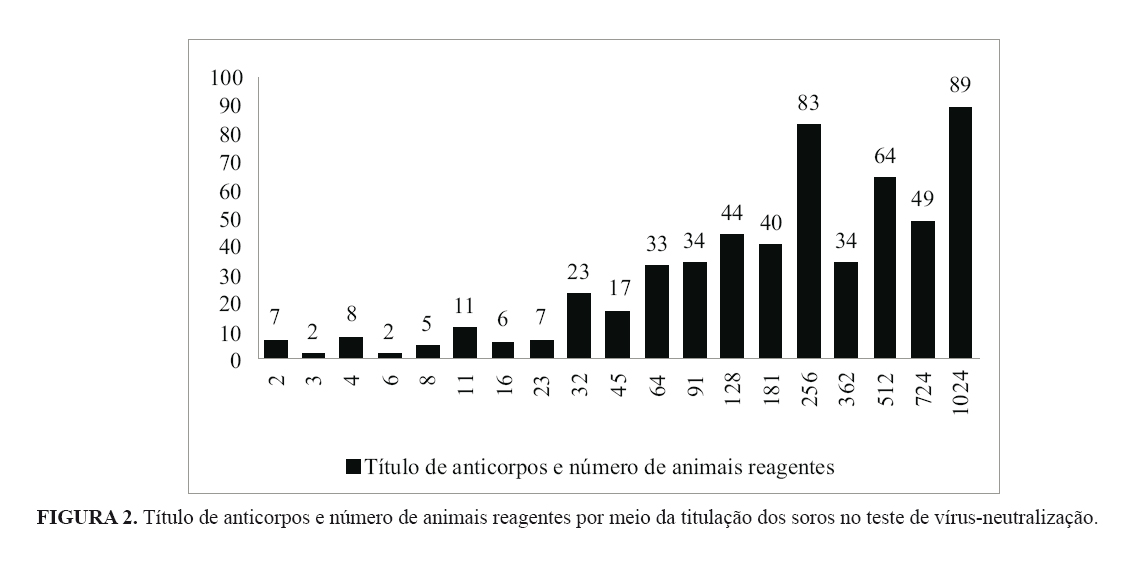de 63,4% a 100%. Evidenciaram-se 36,3% de animais com elevados títulos