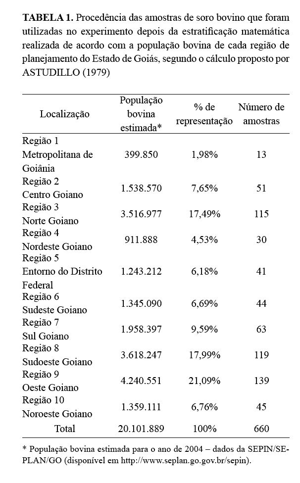 do Estado de Goiás. Para tanto, 660 amostras de soro foram colhidas em