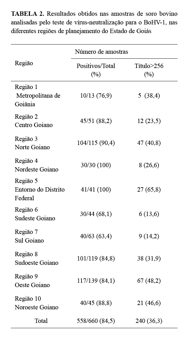 pelo herpesvírus bovino tipo 1 (BHV-1) no Estado de Goiás, Brasil. Ciência