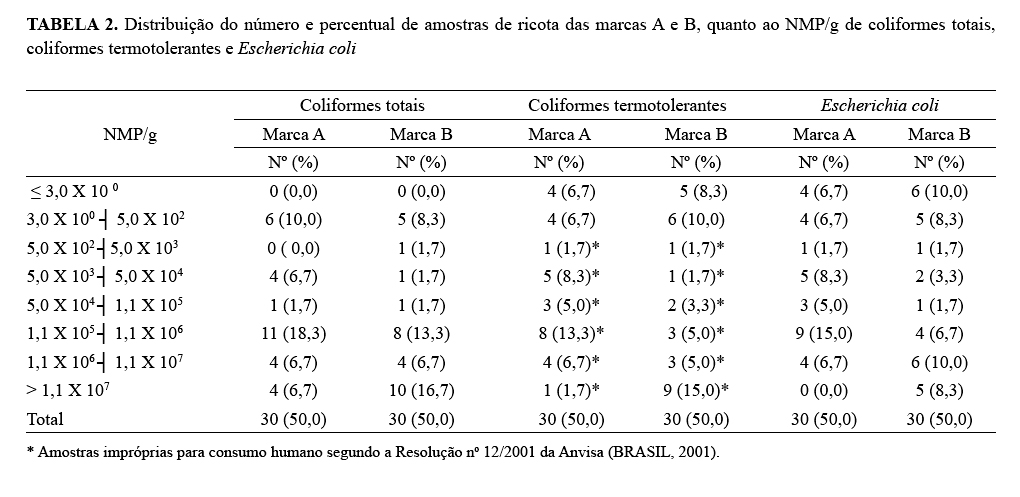 termotolerantes em queijo ricota comercializado na cidade de Pelotas-RS. In: