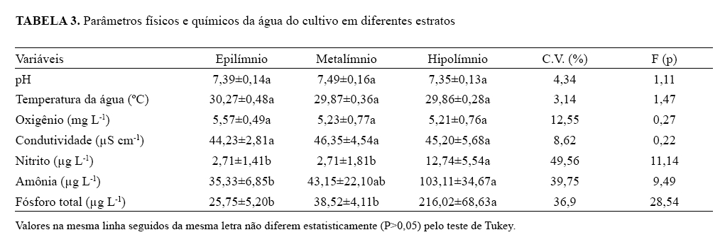 e vertical das características limnológicas em ambiente de criação de