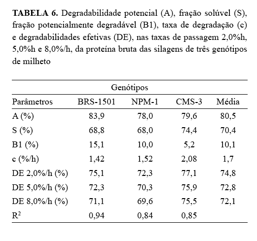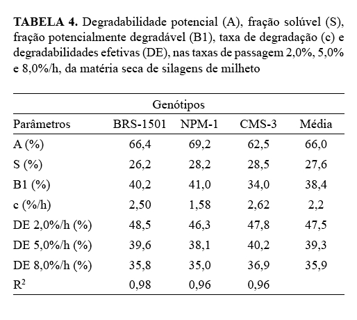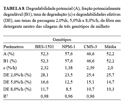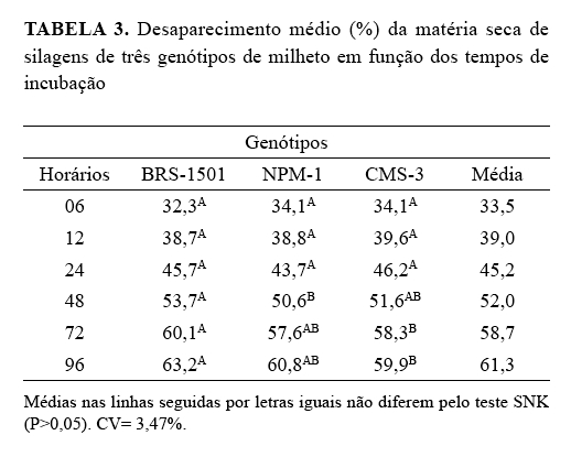 degradabilities of three pearl millet genotypes silages (BRS-1501,