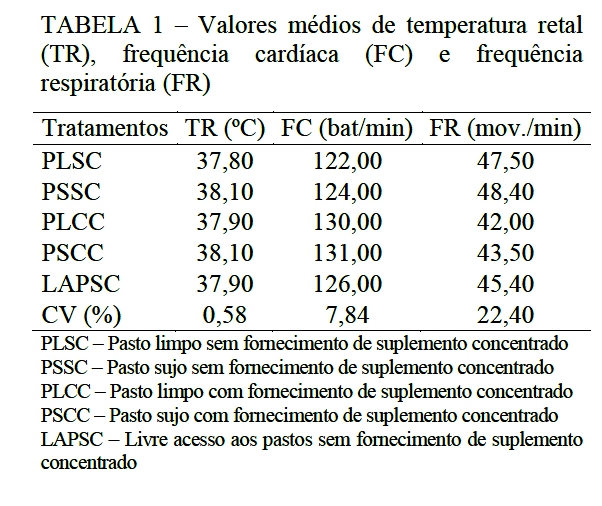 respostas fisiológicas dos animais não foram influenciadas pelos tratamentos. O