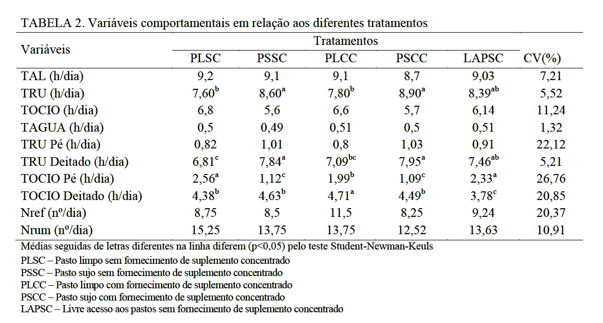 trabalho teve o objetivo de avaliar o comportamento ingestivo e respostas