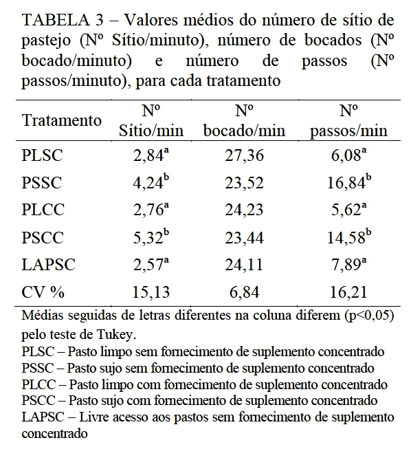 acesso aos pastos sem fornecimento de suplemento concentrado (LAPSC).