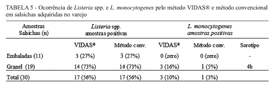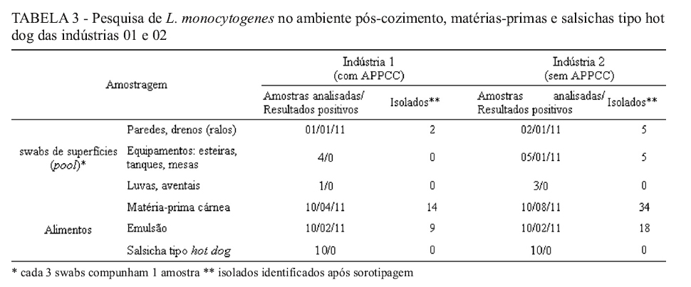 presence of the bacterium in frankfurthers consumed in Brazil and the