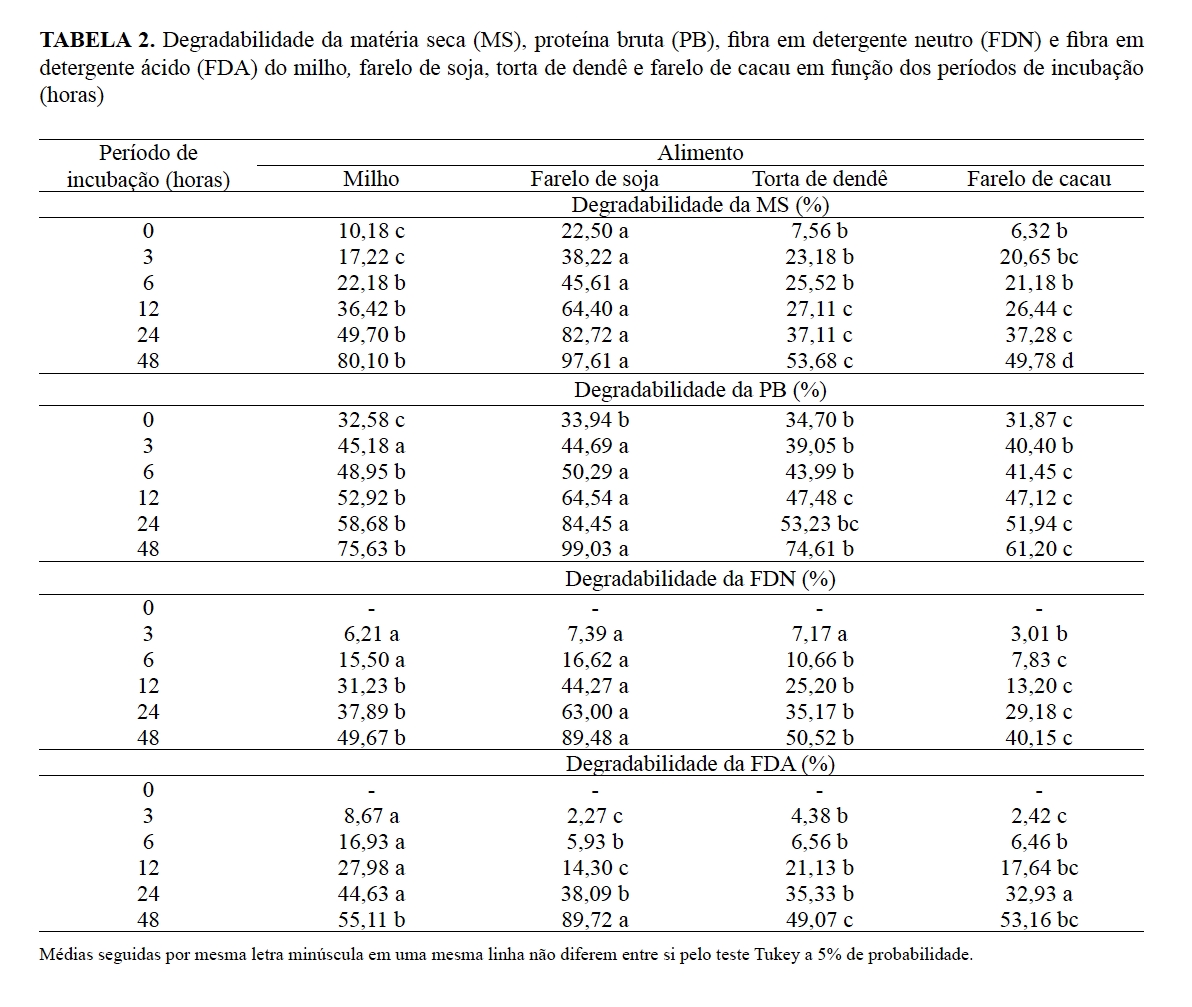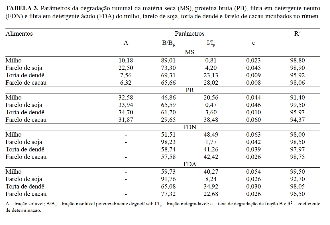 L.). Incubaram-se amostras de cada alimento no rúmen de