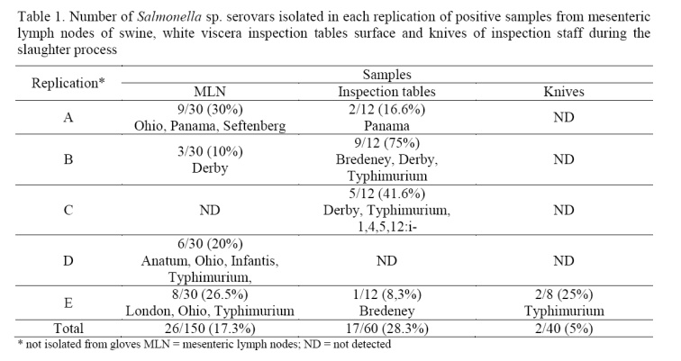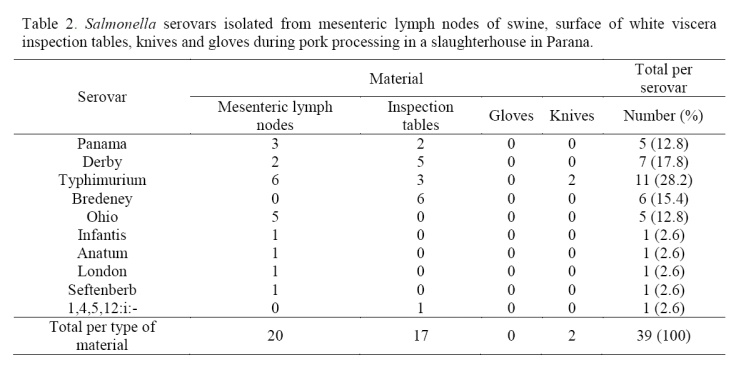 sp. FROM MESENTERIC LYMPH NODES OF SWINE SLAUGHTERED IN WESTERN PARANA TO WHITE VISCERA, INSPECTION TABLES AND TO