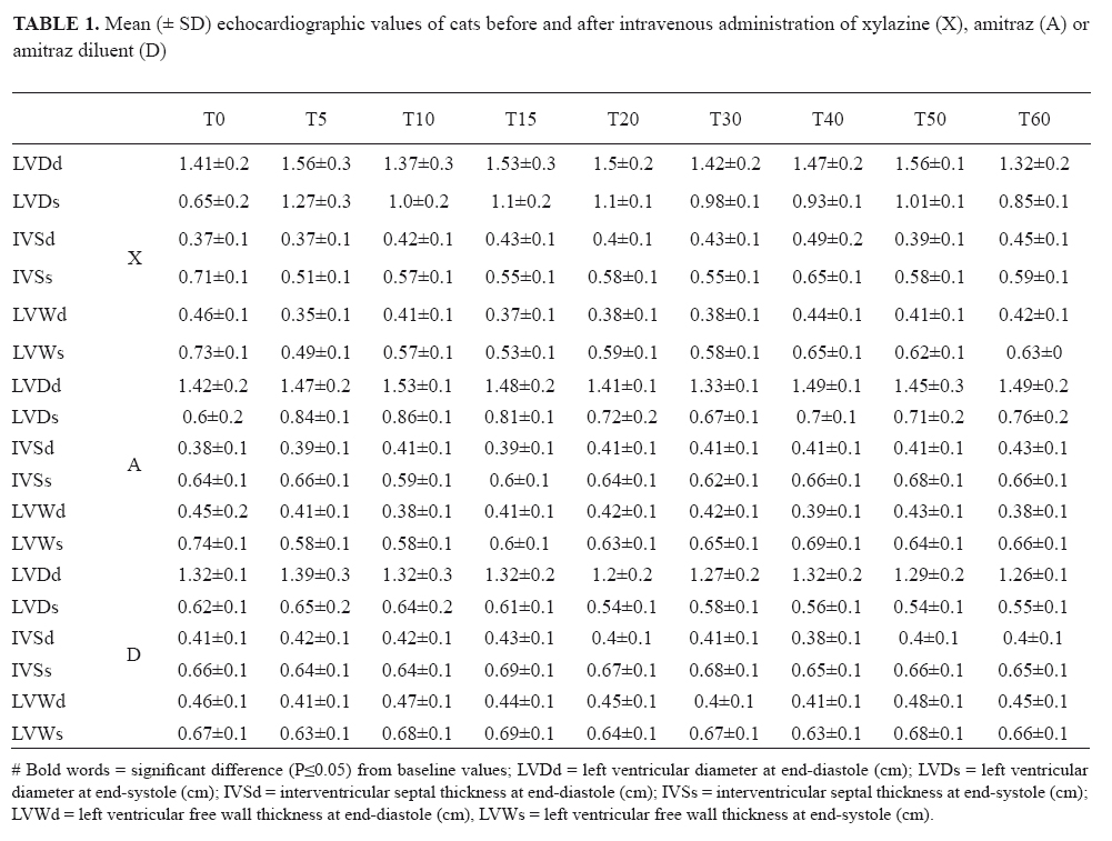 KEYWORDS: Amitraz, xylazine, echocardiography, electrocardiography, cats.
