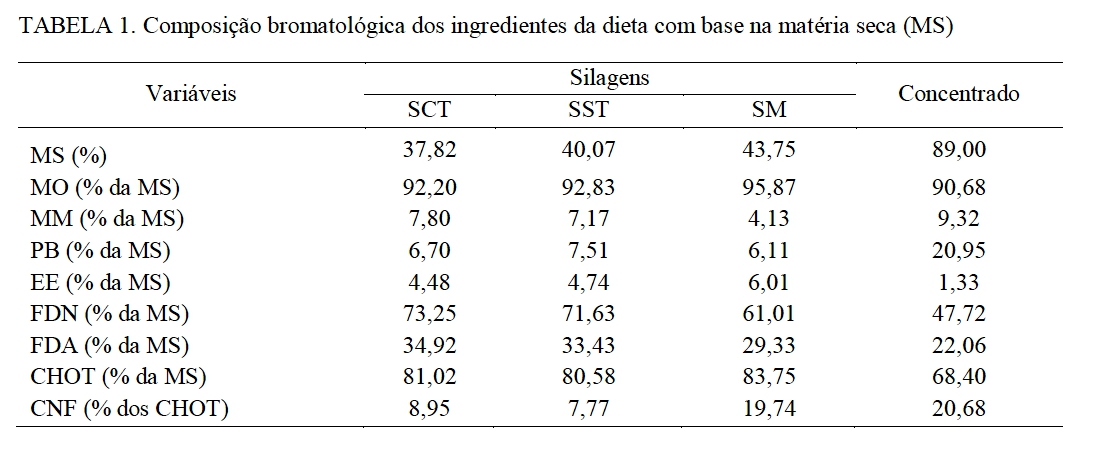 foi de 70:30, com base na matéria seca dos ingredientes. Foi utilizado