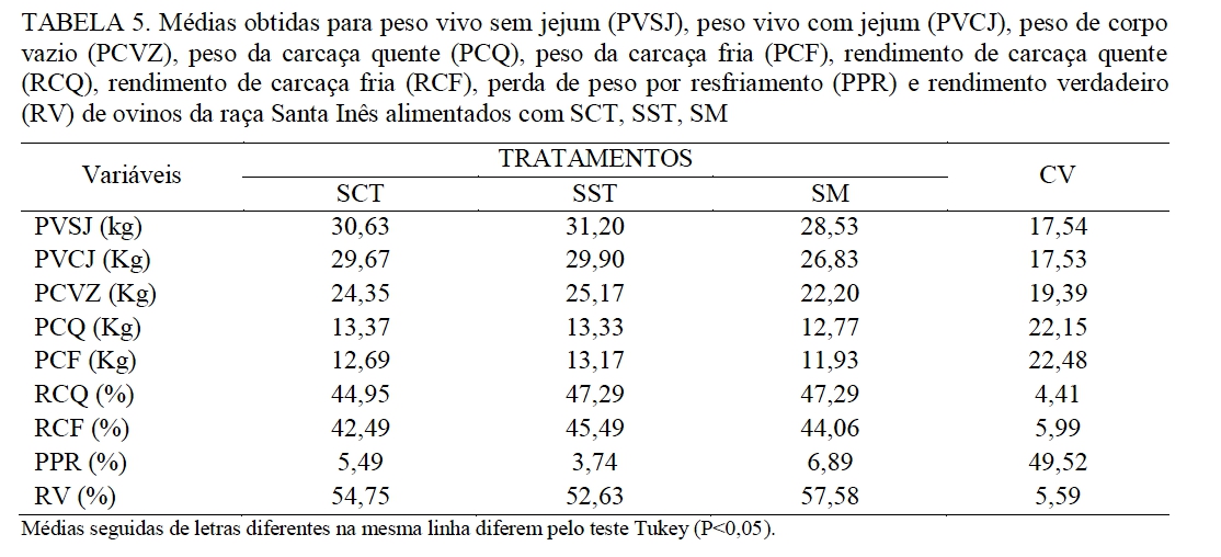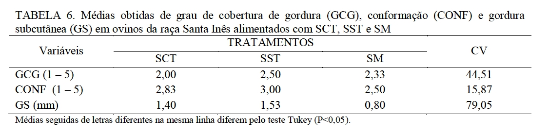 whole, Santa Ines, male lambs, distributed in a completely randomized