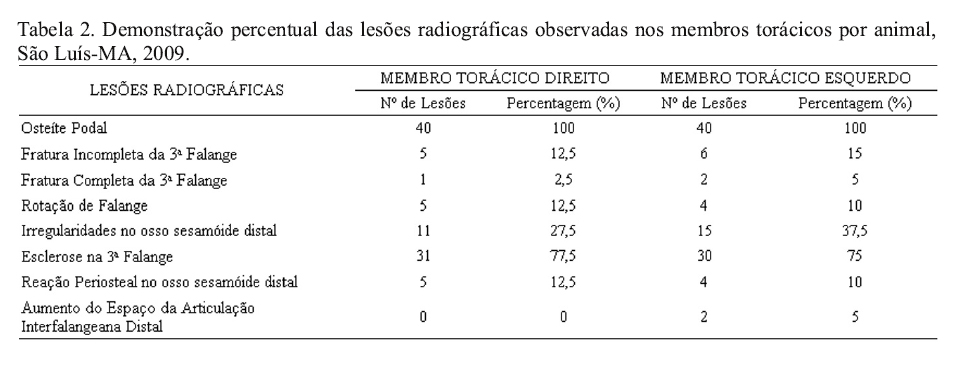 lesões na terceira falange, os animais não apresentaram sinais clínicos