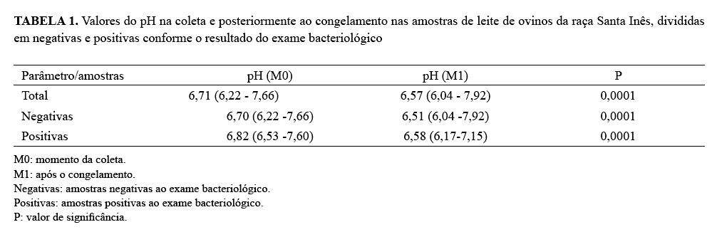 Observou-se redução do pH após o congelamento, sendo os valores maiores