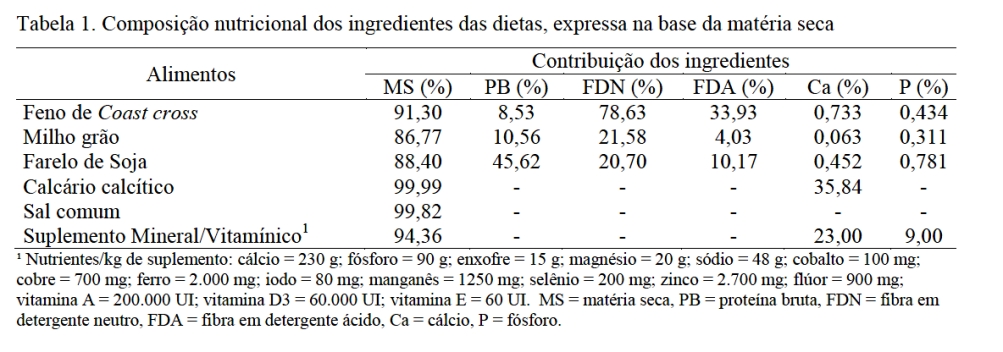 alimentação dos animais foi constituída de feno de capim coast-cross (Cynodon dactylon