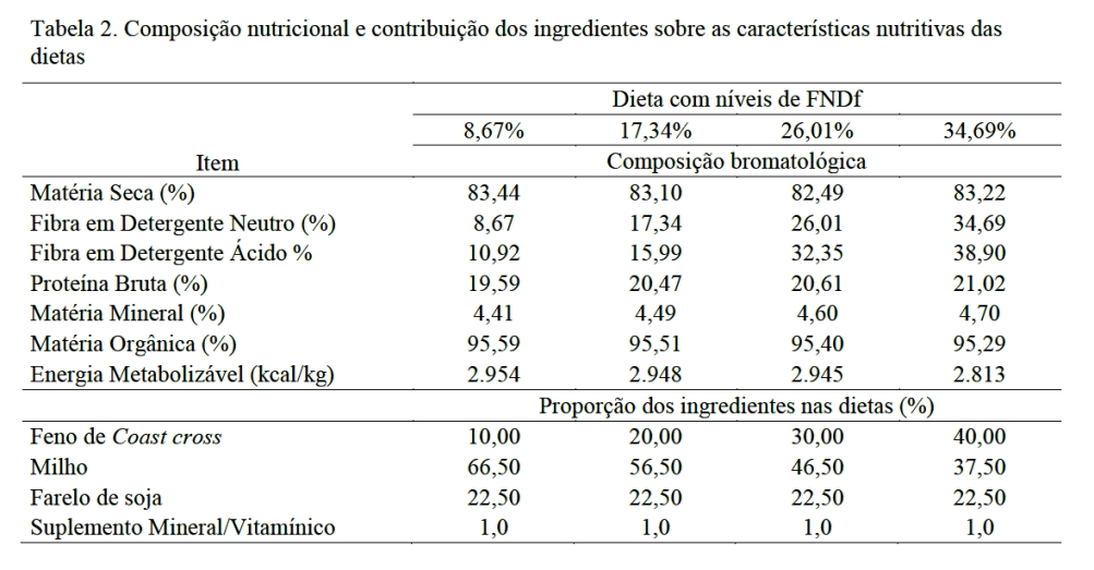 BAIÃO, A. A. F.; BORGES, I.; SILVA, V. B. Níveis de fibra em detergente neutro forrageiro na