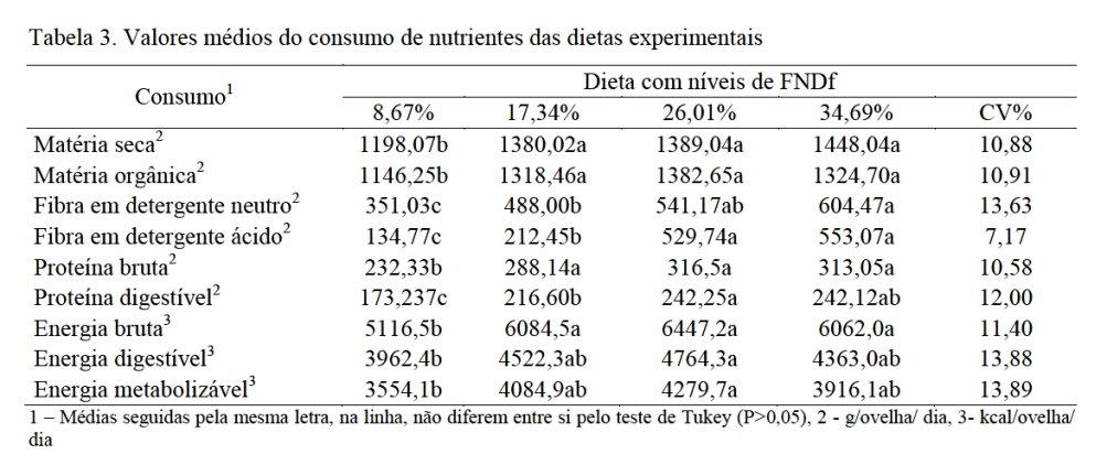 No presente estudo, o consumo de FDN foi de 33,35 g/PV0,75, na dieta