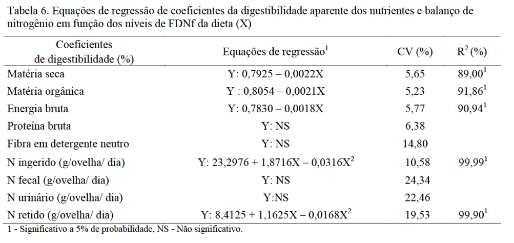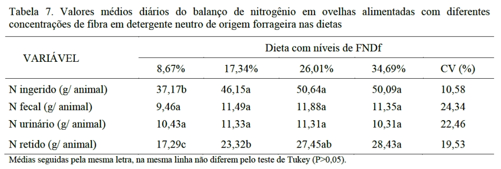 menores níveis de FDNf e, com isso, teriam influenciado também a retenção de N.