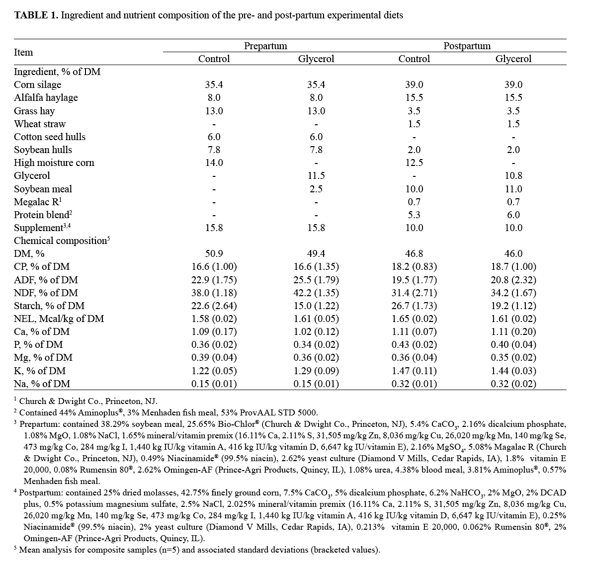 methodology. Feeding prepartum glycerol to transition dairy cows