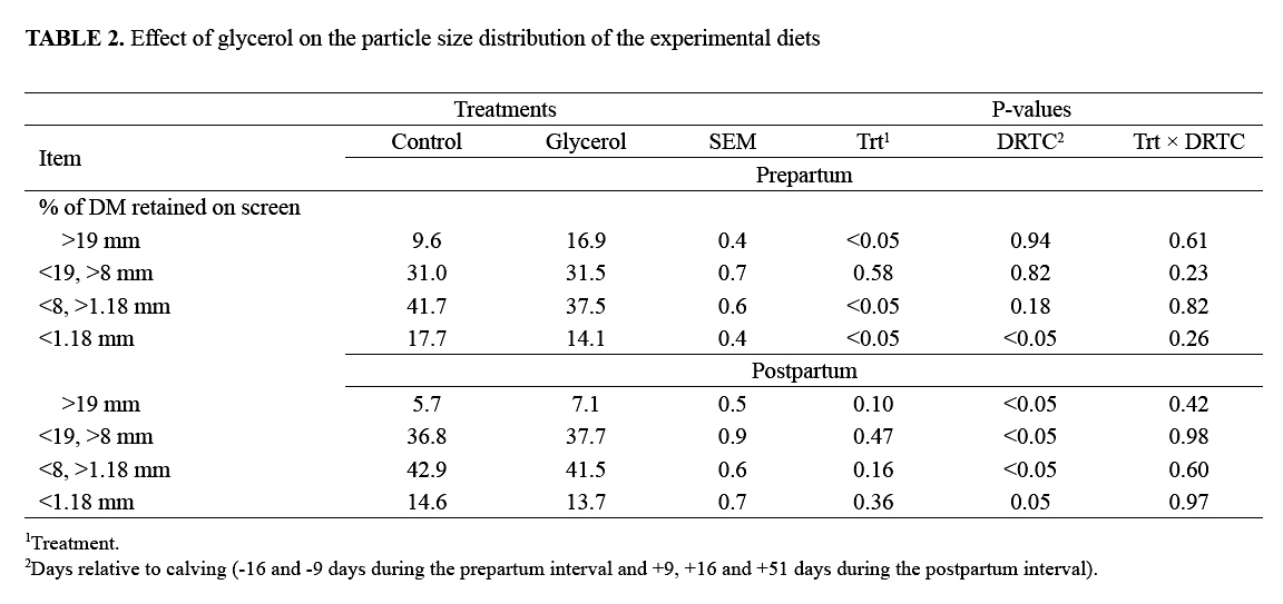 medium particles (<19, >8 mm). Cows fed prepartum glycerol