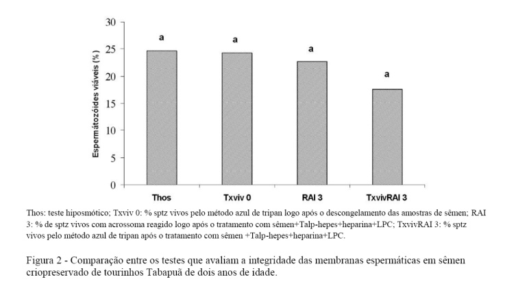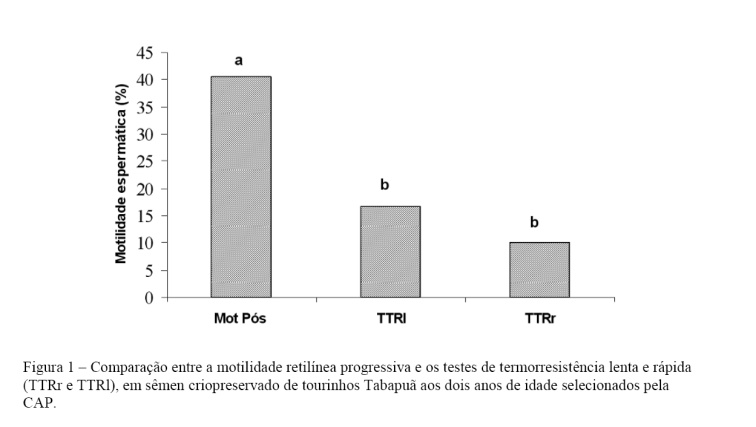 post-thaw motility and membrane integrity of cryopreserved Gyr bull semen