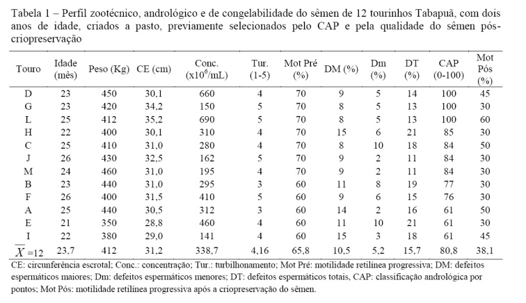 pré-selecionados pela classificação andrológica por pontos (CAP). Arquivo Brasileiro de Medicina Veterinária