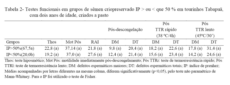 espermática pós-descongelação, avaliada segundo técnicas convencionais