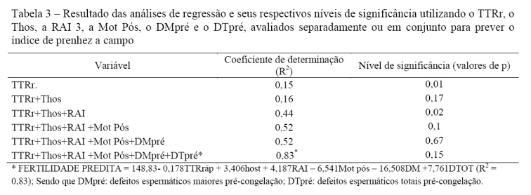 análises de regressões múltiplas para melhor prever índices de prenhez.
