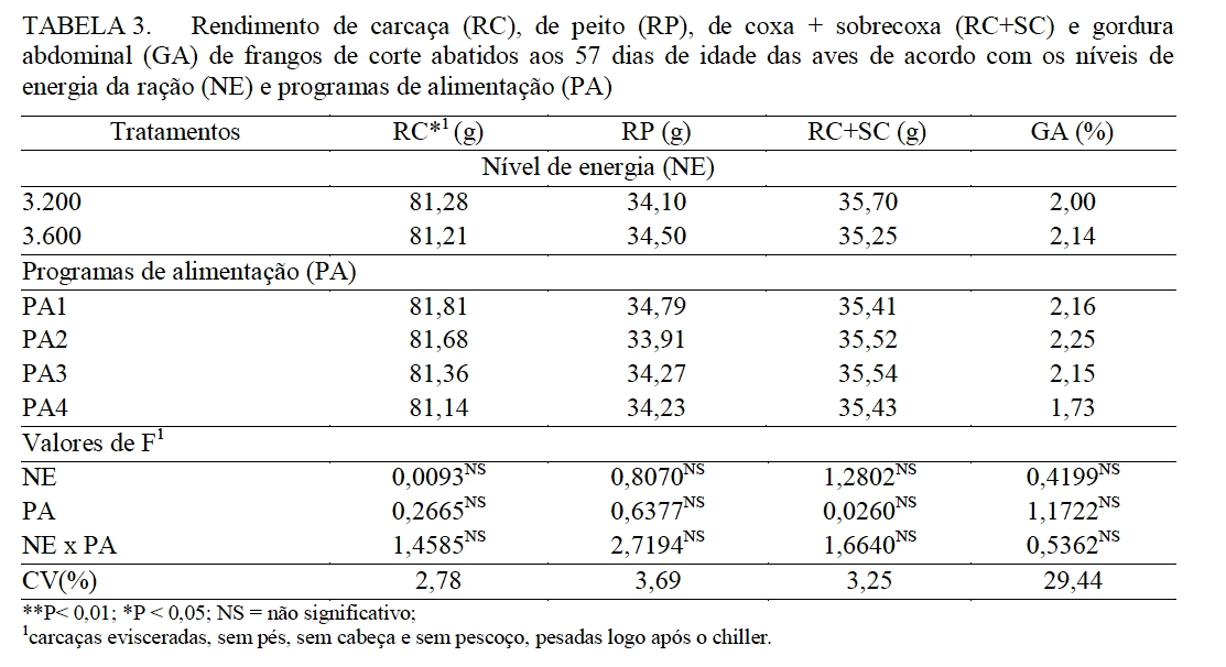 L. A.; PIRES, J. E. P. Níveis Energia Metabolizável em Rações de Frangos de