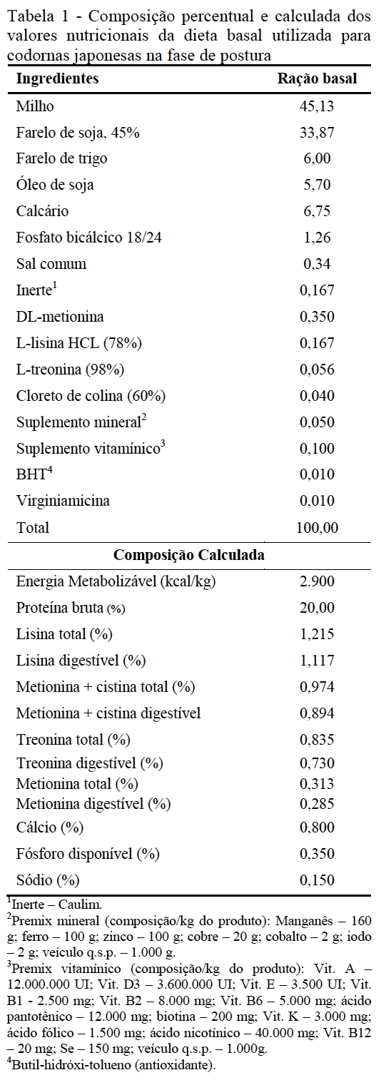nutricionais de codornas, sobretudo daquelas destinadas à produção de