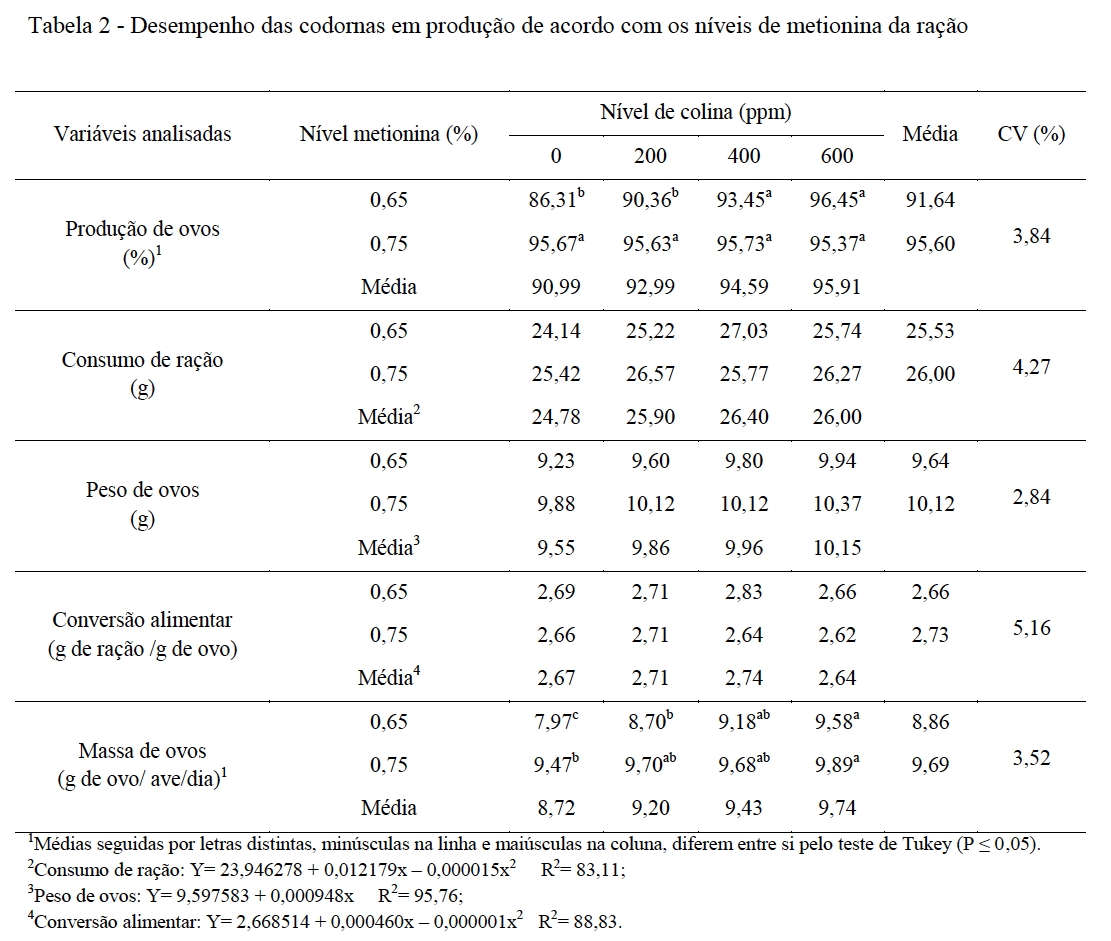2011). A suplementação de metionina nas rações de codornas permite essa